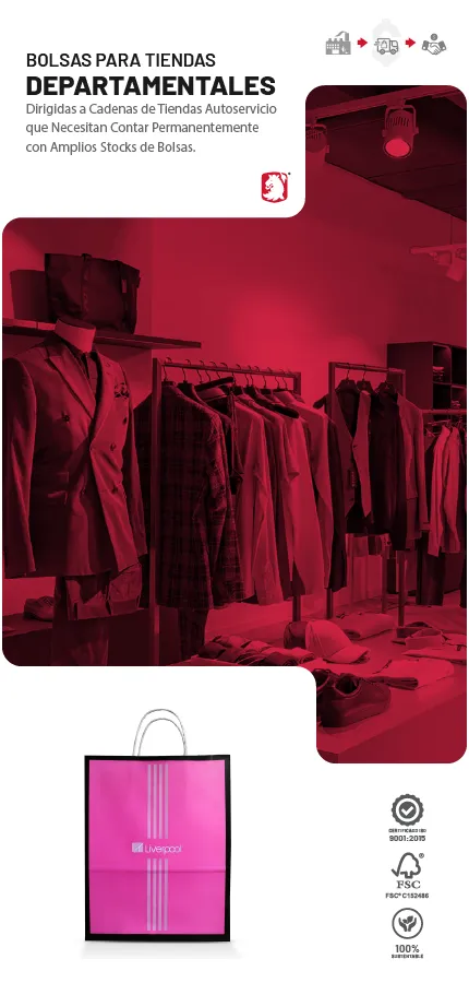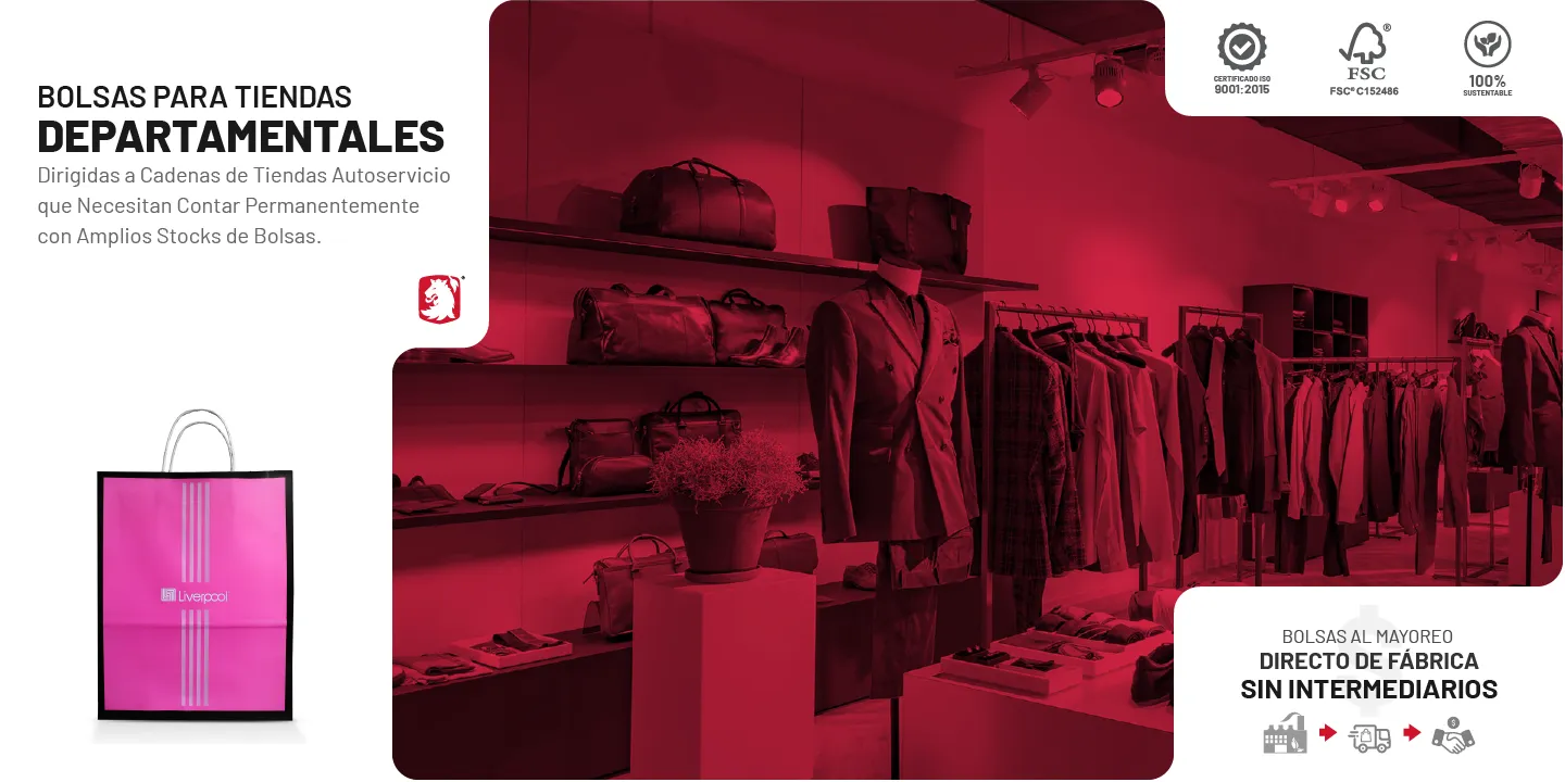 El propósito de contar en todo momento con bolsas en las tiendas departamentales es poder proporcionar en todo momento a sus clientes un medio práctico y sustentable para llevar a casa sus compras cómodamente, estas bolsas deben cumplir con la función de promover y diferenciar su marca de manera eficaz, ser prácticas, resistentes, sumamente atractivas, reconocibles y en definitiva capaces de transmitir los valores de su marca.